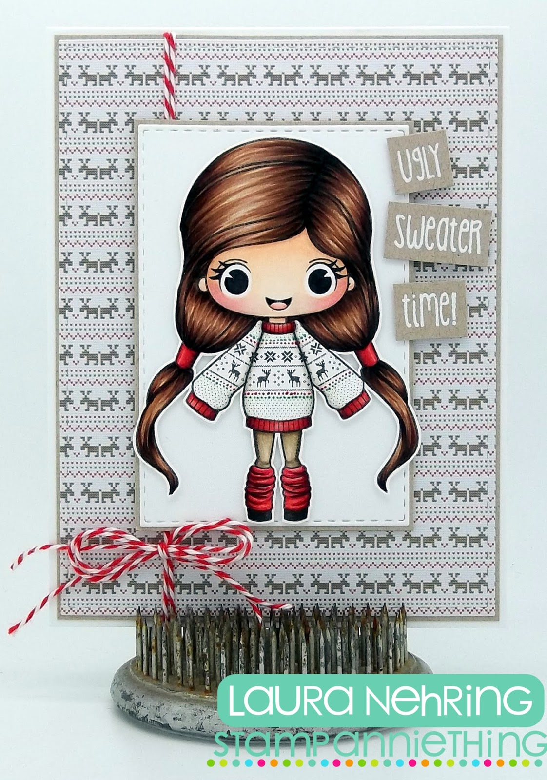 I paired her with some papers from the YNS Winter Knits 6x6 Paper Pad, and an old C.C. Designs senitment stamp.